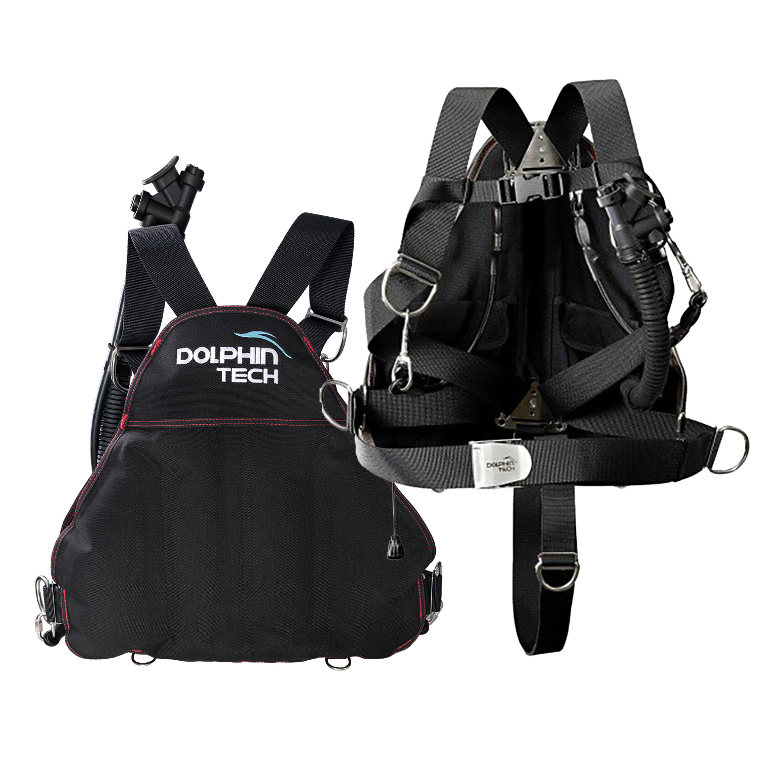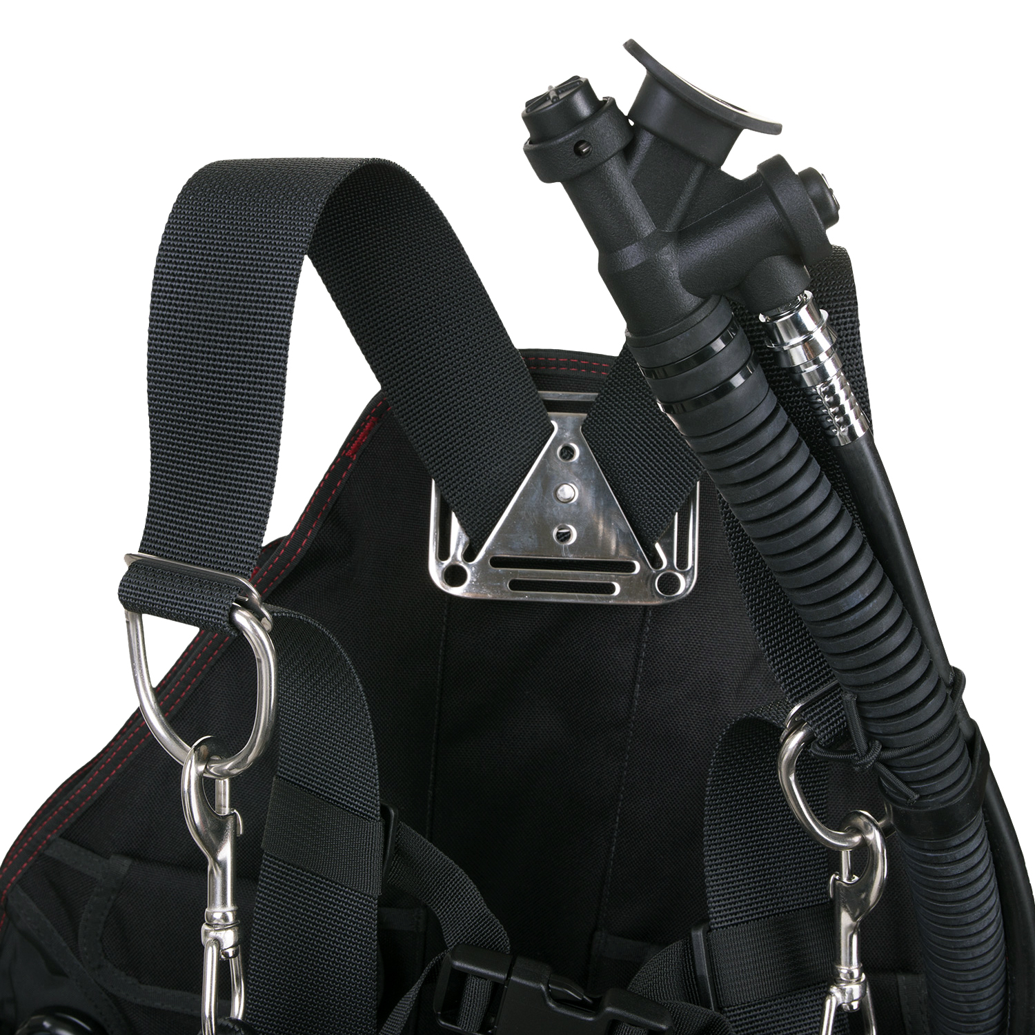 | Sistema integrado completo que se puede utilizar para bucear en aguas cálidas con traje de neopreno y tanque de aluminio o buceo en aguas frías con traje seco y tanque de acero. |